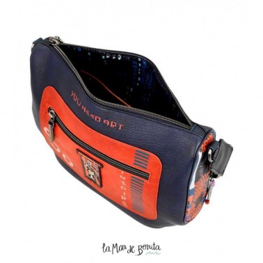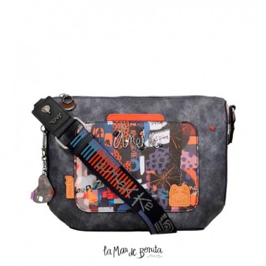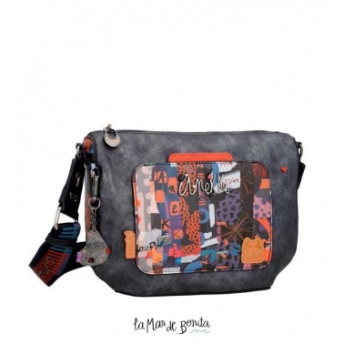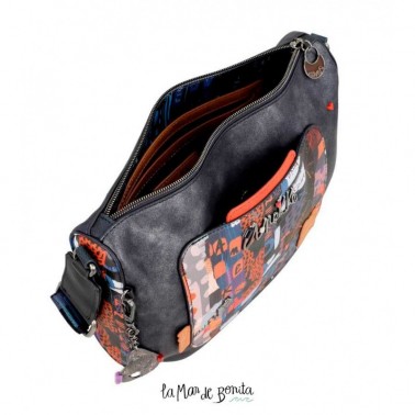 Esta bandolera de tamaño medio cuenta con gran capacidad interior, así como forro y bolsillos. Cuenta también con un bolsillo trasero. El asa es regulable, por lo que podrás adaptarla siempre al largo que prefieras.