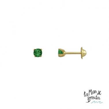 Montados en plata de Ley 925 bañados en oro y montados con una garra de 4 patas una circonita en verde esmeralda. ¡Brillarás con ellos puestos!