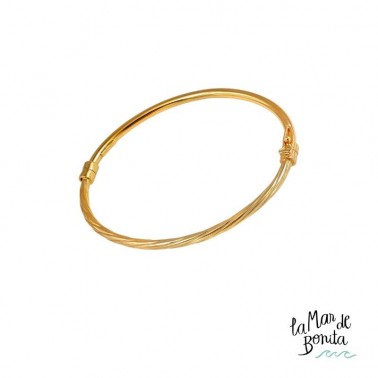 Brazalete bangle de caña para mujer en plata 925 bañada en oro. Esta preciosa pulsera dorada lleva un cierre perfecto para poder ponera y quitarla de forma sencilla y llevar con toda seguridad en su uso.
