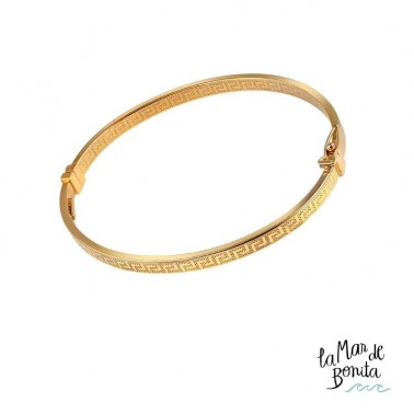 Brazalete Caña con cierre plata Baño Oro greca cuadrada