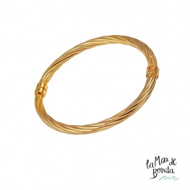 Brazalete bangle de caña para mujer en plata 925 bañada en oro retorzida y estriada. Esta preciosa pulsera dorada lleva un cierre perfecto para poder ponera y quitarla de forma sencilla y llevar con toda seguridad en su uso.