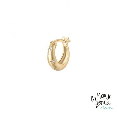 Bienvenida a la joyería de la mar de bonita. Nuestros Aros dorados de mujer con circonitas en blancos son sencillamente perfectos. Montados con la mejor plata de ley 925 y con baño de oro forman la joya perfecta para regalarte, o regalar.