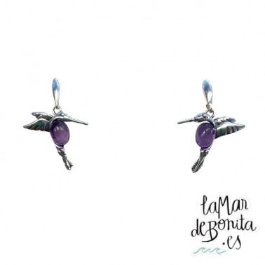 No nos cansamos de ofrecer en la mar de bonita pendientes de mujer en plata que rompan con lo convencional. Por eso, queremos ofrecerte este precioso par de pendientes en plata de ley 925 y con el mineral de amatista. La forma de pájaro carpintero da el significado a las personas trabajadoras y tenazes en sus vidas. Son, por tanto una joya para aquellas personas fuertes y con determinación.