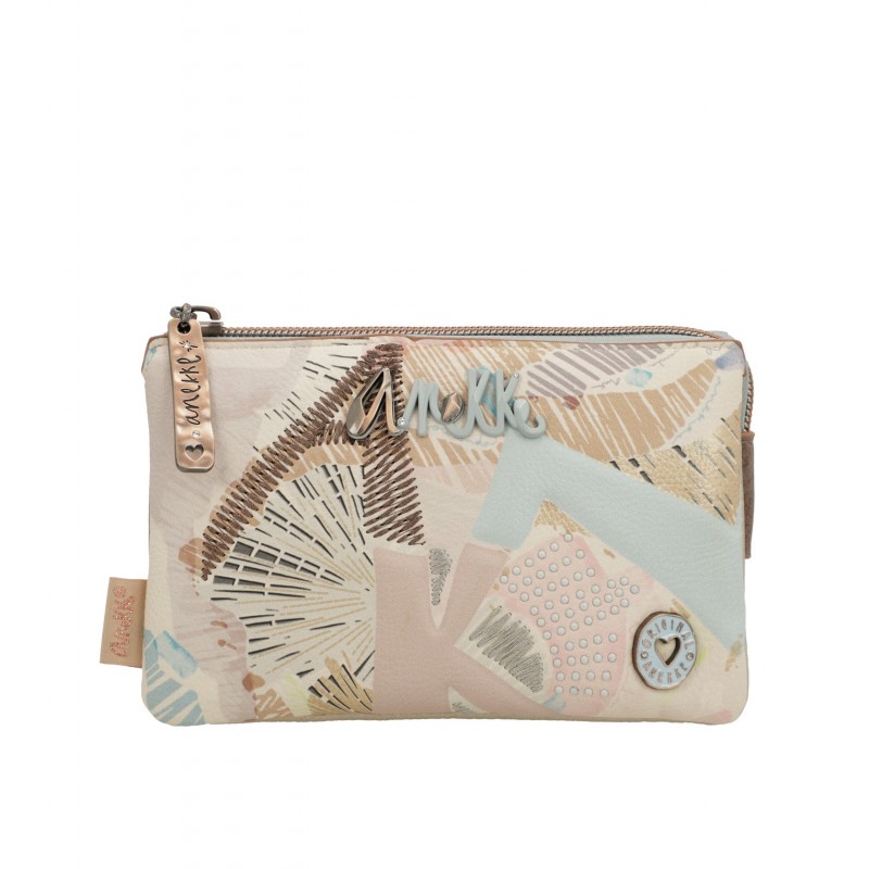 Este monedero de la línea Passion forma parte de la colección Anekke Hollywood, y se caracteriza por sus tonos suaves combinados en diferentes bloques, con troquelados y bordados que generan volúmenes sobre originales estampados.