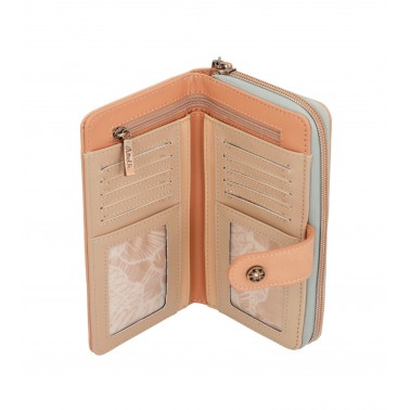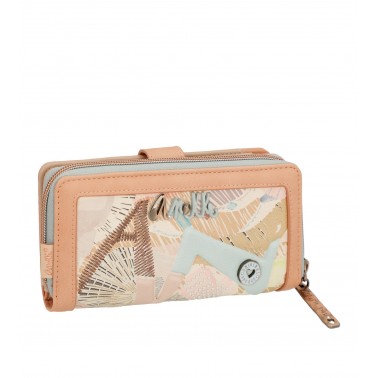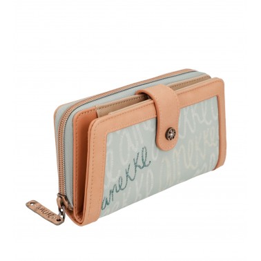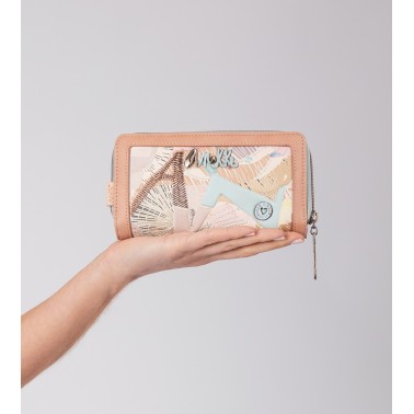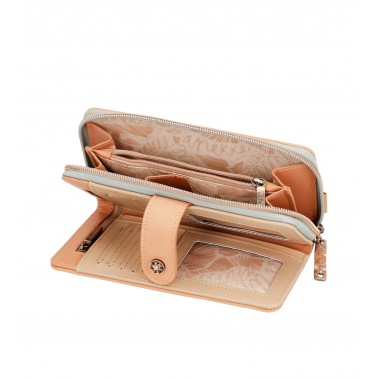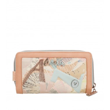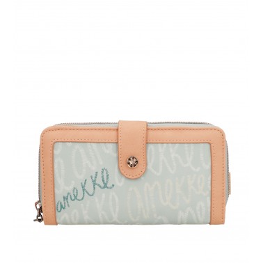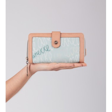 Este billetero de la línea Passion forma parte de la colección Anekke Hollywood, y se caracteriza por sus tonos suaves combinados en diferentes bloques, con troquelados y bordados que generan volúmenes sobre originales estampados.