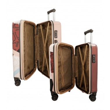 Ambas maletas son robustas, con cierre de cremallera, y ambas podrás ampliar su tamaño, ganando espacio de almacenamiento si lo necesitas. El interior de ambas cuenta con dos compartimentos, uno en cada lateral, con espacio para albergar todo lo que necesites. Cuentan con 4 ruedas que hará muy fácil poder viajar con ellas, más agarre de mano. Para mayor seguridad cuando viajes con ellas, podrás bloquear el cierre con cerradura fija de candado, a la que podrás poner una combinación de números.