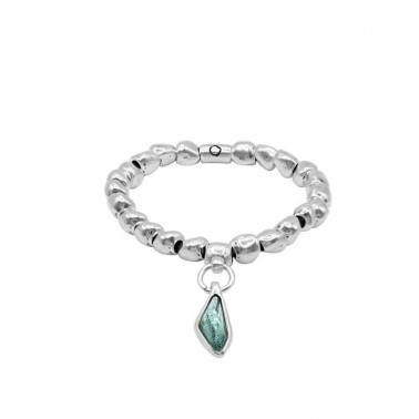 Explora la elegancia natural con nuestra Pulsera Laguna Negra de la colección Aqua de Ciclón. Esta exquisita pulsera elástica, adornada con cristal Murano y pasadores bañados en plata, es una declaración de estilo que captura la esencia de la belleza orgánica.