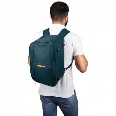 Bolso de viaje convertible en mochila para viajar o ir al gimnasio. Este fantástico bolso ymochila de Gabol esta fabricado con material reciclado de botellas de plástico.Cuenca con bolsillos interiores y exteriores, y va forrado con refuerzo en su interior. El material, es altamente resistente al roce y desgaste de los viajes. Tamaño apto para dejajo del asiento de un avión, perfecto para las compañias actuales de low cost.