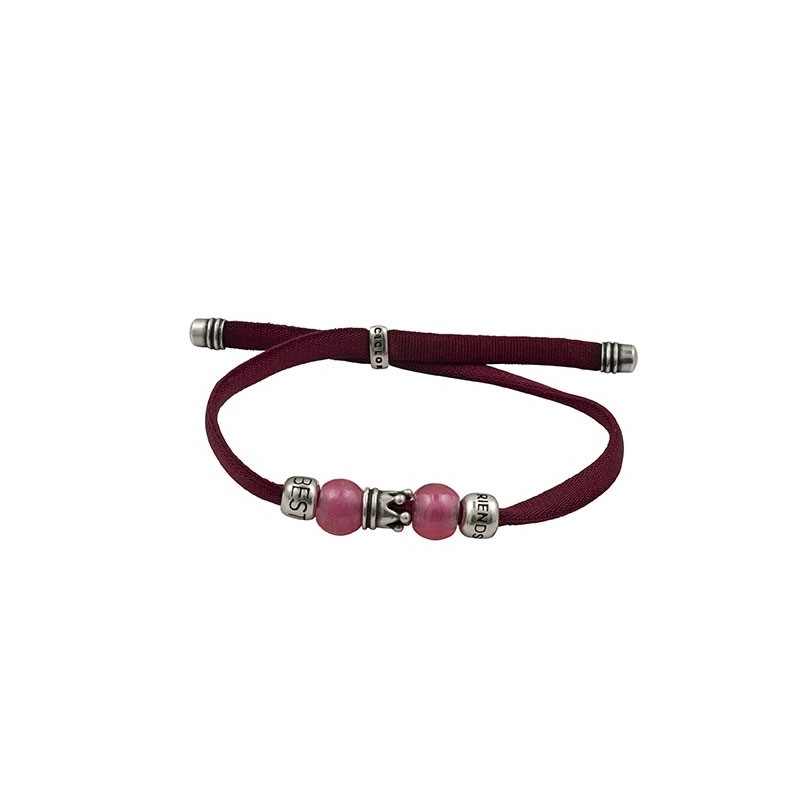 La pulsera Best Friend de Ciclón simboliza la amistad eterna. Confeccionada con goma elástica de raso burdeos, combina estilo y comodidad. Pasante de corona y esferas grabadas en plata añaden encanto y significado. Esferas de cristal murano aportan vibrante belleza. Ajustable a 17 cm, brinda un ajuste cómodo. Regalo ideal para celebrar la conexión entre mejores amigas. Un recordatorio del vínculo especial compartido. Demuestra tu amor con esta joya elegante y significativa..