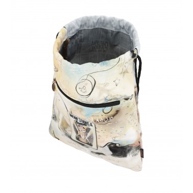 Es una mochila ligera con cierre tipo saco, asas de algodón que al cerrarlas crean ese original efecto tipo saco.