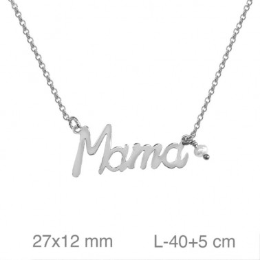 Esta gargantilla fabricada en plata de 1ª Ley 925 esta cortada a laser y pulida de forma manual. El colgante con la palabra Mamá,se une con dos anillas a la caden de plata de 40 cm de larga con un alargador de 5 cm para un ajuste más personalizado. El colgante con la palabra mamá es de 27x12 mm luciendo precioso en tu pecho.