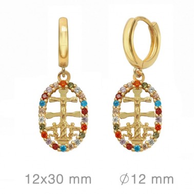 Aros criollas Cruz de Caravaca circonitas colores Baño de Oro plata 925