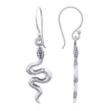 Pendientes fabricados en plata de 1ª Ley pulida en los talleres de La Mar de bonita, pieza exclusiva y elegante con serpientes en zig zag.