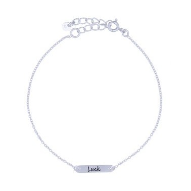 Esta gargantilla con la palabra suerte grabada en laser es una muestra de amor y un regalo personalizado muy especial. Está montada en una cadena de 40 cm de larga, con 5 cm más de extensión para personalizar la caida total.