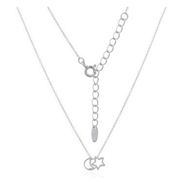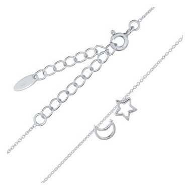 El universo de La Mar de Bonita, está lleno de lunas y estrellas fabricadas en plata. En esta joya, las montamos en una cadena de 40 cm y 5 cm más de extensión para que la lleves a tú gusto.