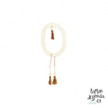 Para los tibetanos, el hueso de yak representa pureza, fuerza y coraje. Así pues se utilizan los malas de hueso para domar energías negativas y dolorosas. El color blanco se asocia a la divinidad Chenrezig, el Buda de la compasión cuya mirada benévola nos protege.