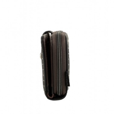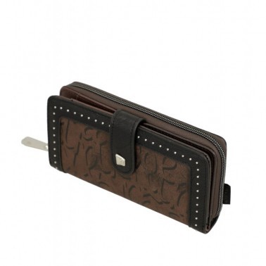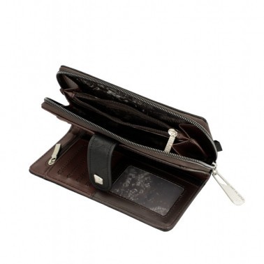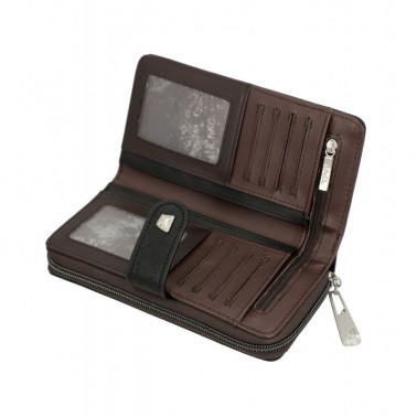Este billetero de tamaño mediano está realizado con material flexible, y cuenta con dos compartimentos principales: la parte trasera, donde encontrarás un amplio billetero y espacio para billetes y/o tarjetas. En la parte superior cuenta con cremallera, y en el interior podrás guardar monedas. Todo el interior va forrado.