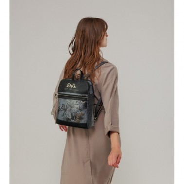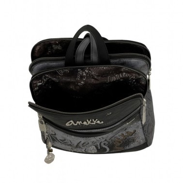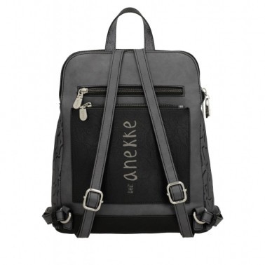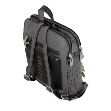 Esta mochila cuenta con 3 compartimentos independientes, todos con cierre de cremallera. Es de tamaño medio-grande y cuenta con bolsillo trasero. La mochila cuenta con dos asas de mochila regulables a diferente largo, más un asa agarradera para la mano. El interior es forrado y cuenta con bolsillos.
