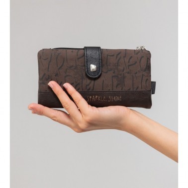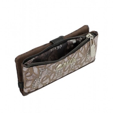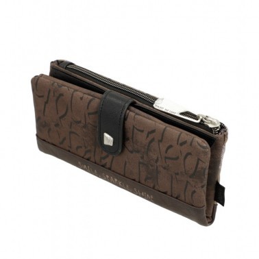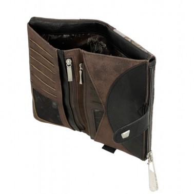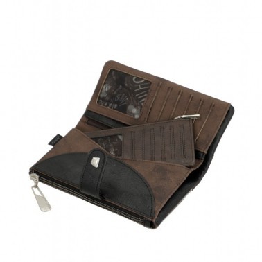 Este billetero de tamaño grande está realizado con material flexible. Cuenta con dos compartimentos principales: la parte trasera, donde encontrarás un amplio billetero y espacio para billetes y/o tarjetas. En la parte superior cuenta con cremallera, y en el interior podrás guardar monedas. Todo el interior va forrado. Además, cuenta con un tarjetero extraíble en su interior.