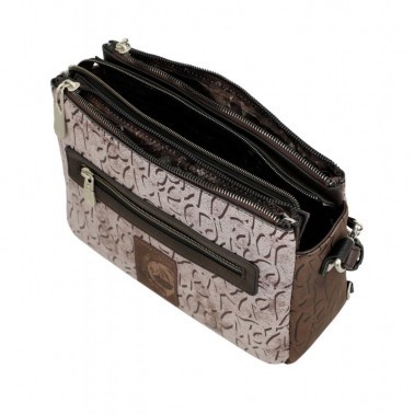 Esta bandolera con cierre de cremallera es de tamaño medio a grande. Cuenta con 3 compartimentos independientes, el interior es forrado y tiene bolsillos, además de otro bolsillo exterior en la parte trasera. El asa bandolera es regulable a diferente largo, ideal para adaptar a mujeres de diferentes alturas.