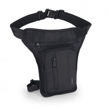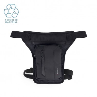 Riñonera de pierna de material reciclado y piel sintética, negro.