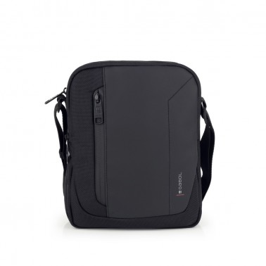 Bandolera grande para tablet 8¨de material reciclado y piel sintética, negro