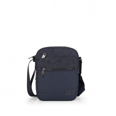 Bandolera grande de poliéster resinado y piel sintética, azul marino.