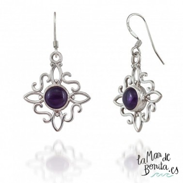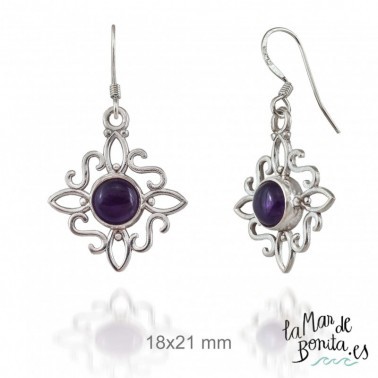 Va montado para potenciar esta joya de nudo de bruja, una piedra de amatista para que este cristal favorezca la belleza y protección del mismo.