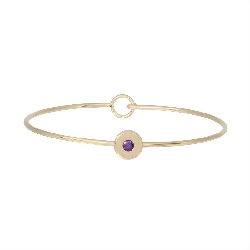 Elegante, minimalista y llena de energía, esta pulsera rígida combina la resistencia del acero inoxidable dorado con la belleza natural de la amatista, una piedra apreciada por transmitir calma y claridad interior.