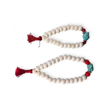 Esta pulsera combina la energía protectora del hueso blanco, símbolo de pureza y fuerza, con la turquesita, piedra sagrada que aporta sanación, claridad y equilibrio.