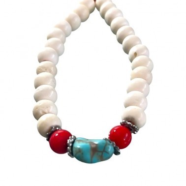 Pulsera de hueso blanco con turquesita