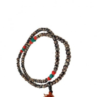 Japamala de Hueso oscuro grabado con Piedras