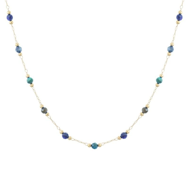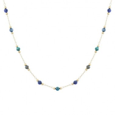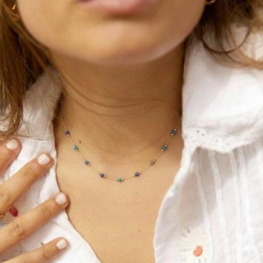 Sutil, moderna y llena de frescura, esta gargantilla combina la resistencia del acero inoxidable con la belleza profunda del mineral azul, una piedra que transmite calma, serenidad y equilibrio.