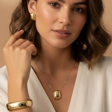 Sofisticada, elegante y con un diseño delicado, la gargantilla Cayetana combina el brillo cálido del acero inoxidable dorado con un estilo atemporal que realza cualquier look.