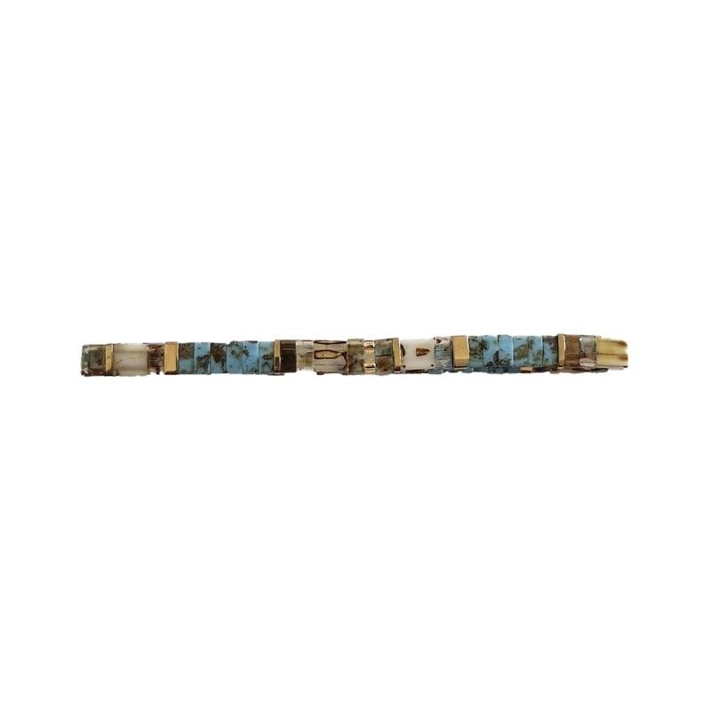 Cada cuenta ha sido cuidadosamente seleccionada, logrando un acabado armonioso que convierte esta pulsera en un accesorio versátil y especial.