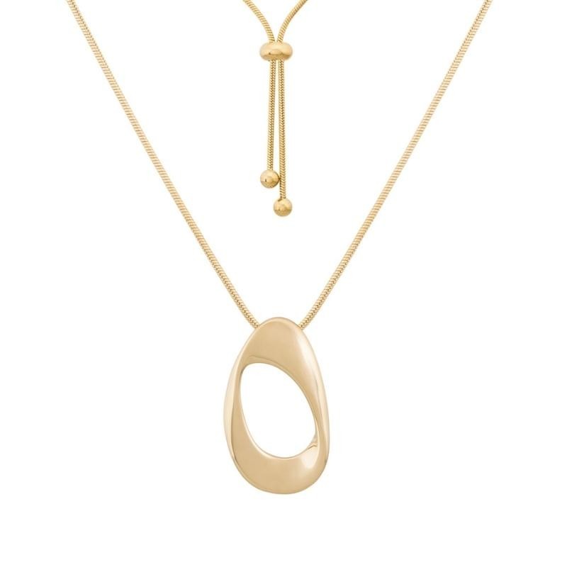 Elegante, moderno y con un diseño distintivo, el colgante Bernarda combina el brillo cálido del acero inoxidable dorado con una estética sofisticada que realza cualquier look.