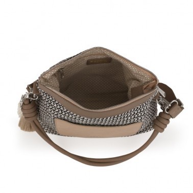 Bolso con efecto rafia y piel vegana sintética. Colección DOLCE de Gabol. Dos opciones de colores en color amarillo y el color beige, en la mar de bonita nos decantamos más por el super ventas y elegante beige.