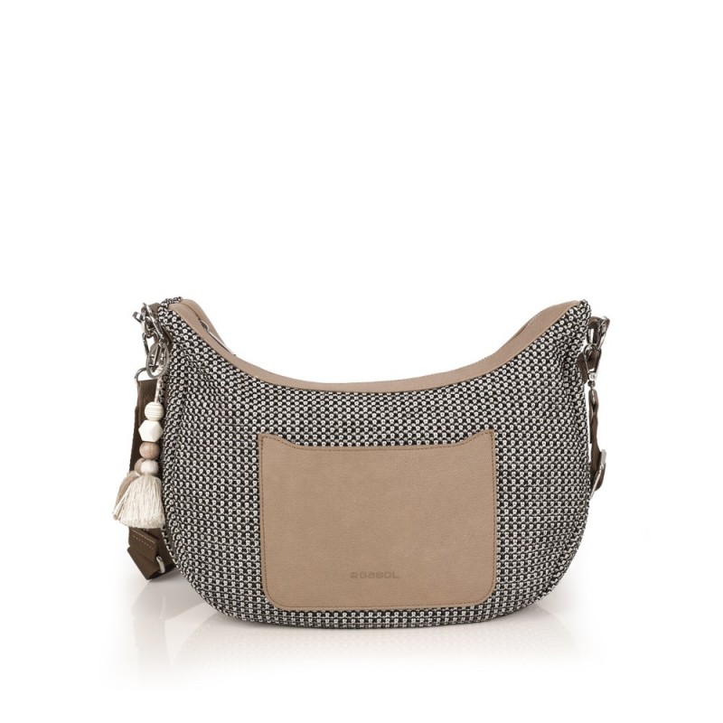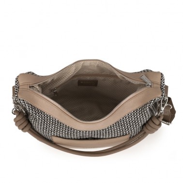 Bolso con efecto rafia y piel vegana sintética. Colección DOLCE de Gabol. Dos opciones de colores en color amarillo y el color beige, en la mar de bonita nos decantamos más por el super ventas y elegante beige.