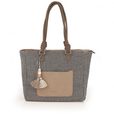Bolso con efecto rafia y piel vegana sintética. Colección DOLCE de Gabol. Dos opciones de colores en color amarillo y el color beige, en la mar de bonita nos decantamos más por el super ventas y elegante beige.