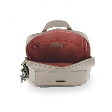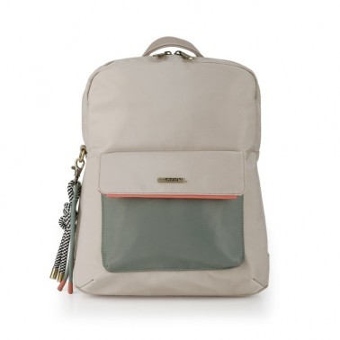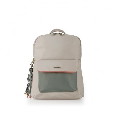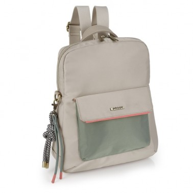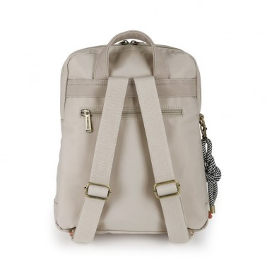 Bolso Mochila con efecto impermeable, para climas húmedos, lluviosos y soleados. Un todo terreno de tu armario. Colección NAYADE de Gabol. Color beige, en la mar de bonita nos decantamos por este color neutro y elegante que es combinable con negros, gris, verdes... todo.