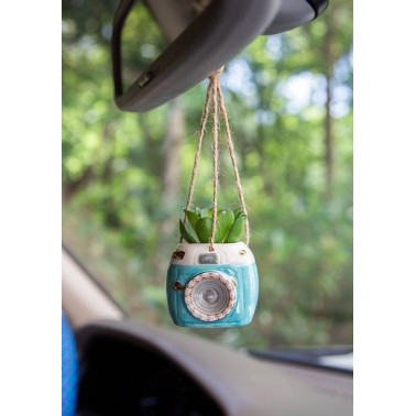 ¿Alguien necesita una mini maceta colgando del espejo retrovisor? No. ¿Pero deberías tenerla? ¡Si! Es el complemento perfecto para decorar tu coche y darle un toque original y único. Siempre puedes utilizarlo en otro lugar ¡y así dar color a cualquier sitio! La maceta es de cerámica pintada a mano con cuerda para colgarla. Las plantas son artificiales, pero con acabados realmente realistas tanto a la vista como al tacto.