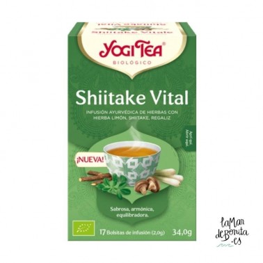La infusión de Yogi Tea Shiitake Vital pertenece a la gama de infusiones ayurvédicas. Estas se caracterizan por ayudarnos a controlar las funciones biológicas y psicológicas. Para ello, se utilizan elementos de sanación y regulación del cuerpo. Y ofrece beneficios como mejoramiento del metabolismo, más energía, limpieza del organismo o propiedades antiinflamatorias, entre otras.