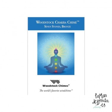 Esta campana de viento lleva 7 piedras representativas de cada uno de los 7 centros energéticos del cuerpo humano. Se encuentran alineadas verticalmente en el badajo, de la misma manera que los chakras están alineados a lo largo de la columna vertebral.