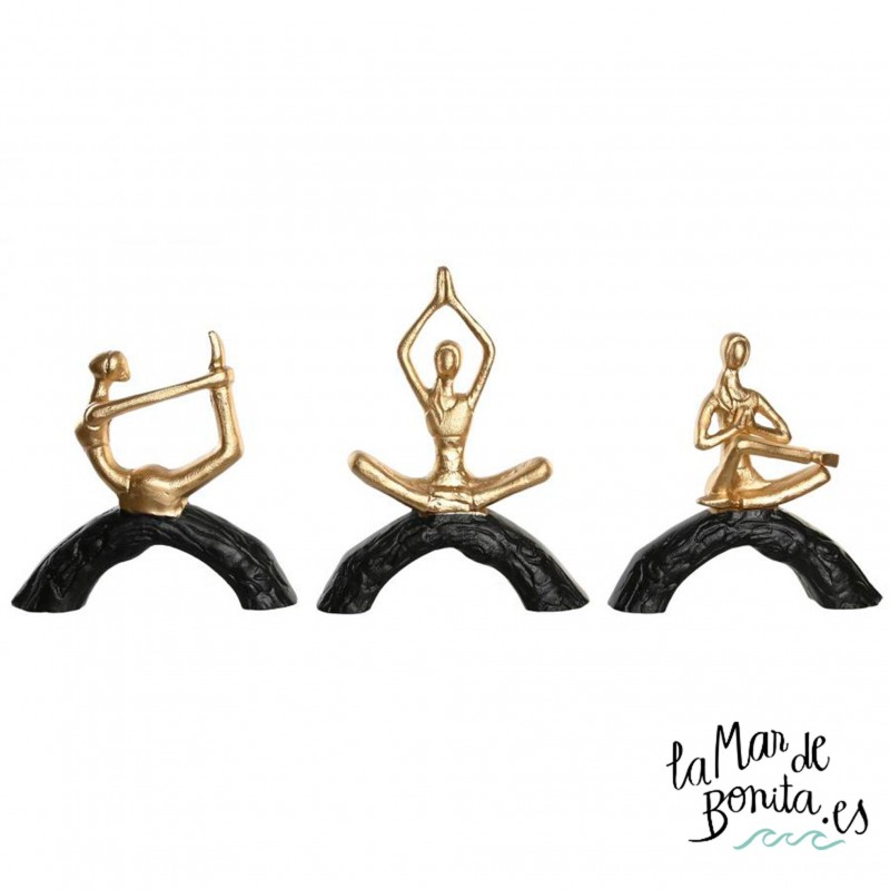 ¿Buscas un regalo diferente, de calidad y a buen precio para sorprender? En La Mar de Bonita tenemos ese regalo único que seguro sorprenderá a quien lo reciba. Este set de decoración se compone de tres bailarinas doradas en diferentes posiciones, sobre una superficie de aluminio curvada en color negro. Con este elemento decorativo, pues tener tres figuras en una, y colocar cada una de ellas en diferentes lugares de la casa o la oficina.