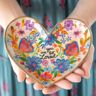 Este precioso vaciabolsillos y joyero de cerámica es sencillamente una monada. El mensaje hacia la persona que lo reciba es inspirador y motivador. Solo alguien lleno de amor, entrega y recibe un joyero de cerámica así de Natural life. Eres tan amado, que este regalo será tu confirmación diaria para que lo recuerdes. y es que, YOU ARE SO LOVED.