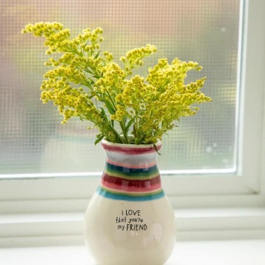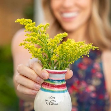 Que la diferencia está en el detalle es una obviedad. Que llenar tu casa con flores naturales en jarrónes bonitos hace hogar. Otra. Si además le añadimos una preciosa frase como Amo que seas mi amigo, es una declaración de intenciones y de amor a la amistad. Los regalos bonitos, se buscan o se crean con amor.