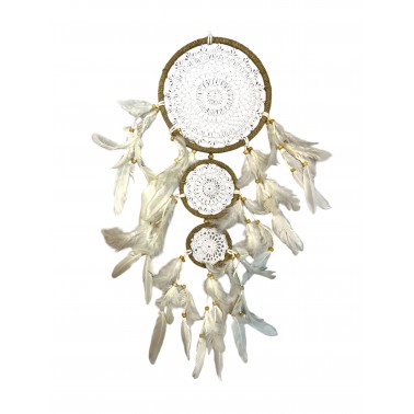Atrapasueños ratán macramé en blanco triple aro con plumas