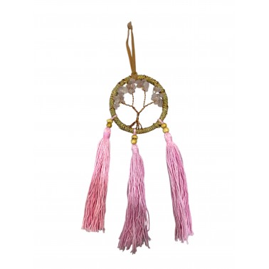 Atrapasueños ratán Cuarzo Rosa flecos