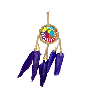 Atrapasueños ratán macráme mix colores Pluma morada