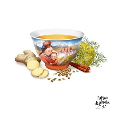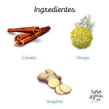 Ingredientes: Jengibre, hinojo, canela, anís, cilantro, aceite de canela, aceite de jengibre, regaliz